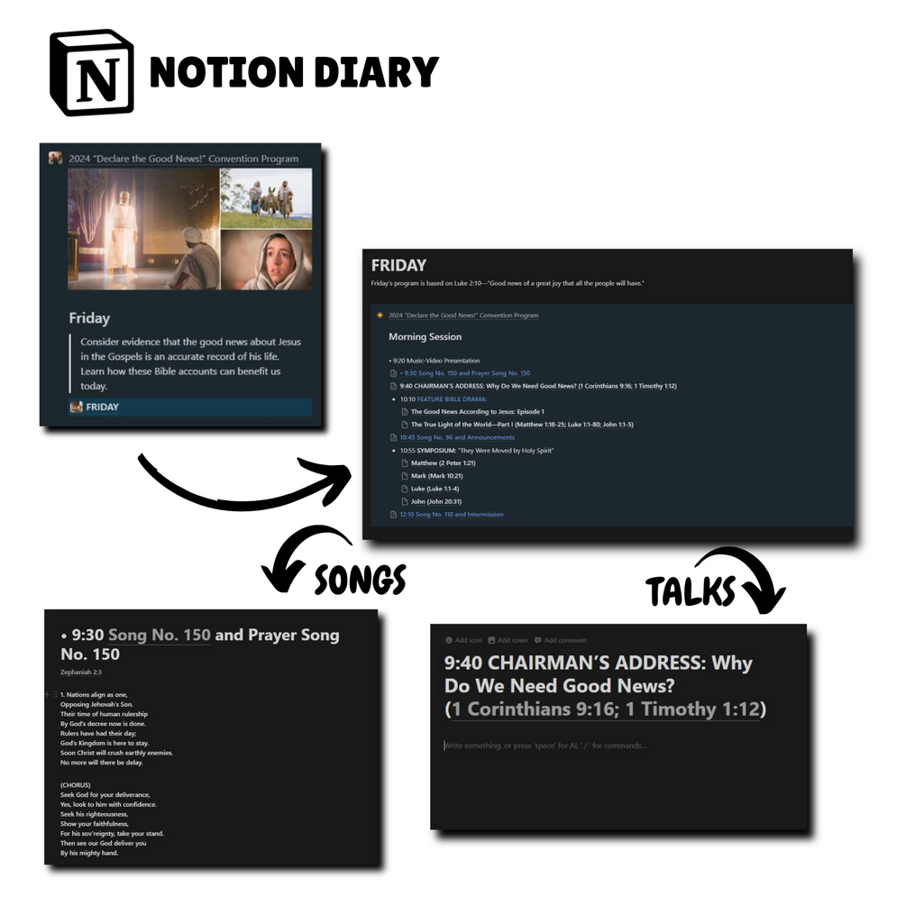 Notion Template for taking notes for your 2024 Convention—“Declare the Good News!”